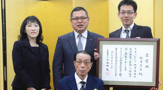 トピックス 当選御礼 2022.11.082022.12.20 2022.11.162022.12.01 ◆ 子育て支援の充実 高校生までの医療費完全無償化を目指します。 ◆青少年の健全育成を促進します いじめ問題や不登校の問題に取り組みます。 ◆ 水と緑の美しいまちをつくります 植樹をして緑を守り、水資源の問題に取り組みます。 ◆ 高齢者福祉、医療の充実 高齢者が住み慣れたまちで最期まで安心して暮らしていけるように 医療支援・介護サービスの提供体制を構築していきます。 ◆ 安心して暮らせるまちづくり 将来の人口減少を見据え、コンパクトで住みよいまちを目指します。 十和田市子ども会初級リーダー宿泊研修会岩手県立少年自然の家 野月忠見市議会議員(前列中央)が令和元年市褒賞受賞時の写真です。左は野月氏長女:順子、右は野月氏孫:晃樹 デイサービスの利用者とお出かけ行事 駒街道マラソンにトレーナーのボランティアで参加しました。 利用者と行事で回転寿司へ 学術大会にて 東日本大震災の復興イベントでギターを弾きました。 (十和田 トワーレ:2016年3月) 奥瀬の浄圓寺へ利用者と 母親の誕生日のお祝いで実家に行った時 両親との写真です。どちらも他界しております。父は兼男、母は千枝子